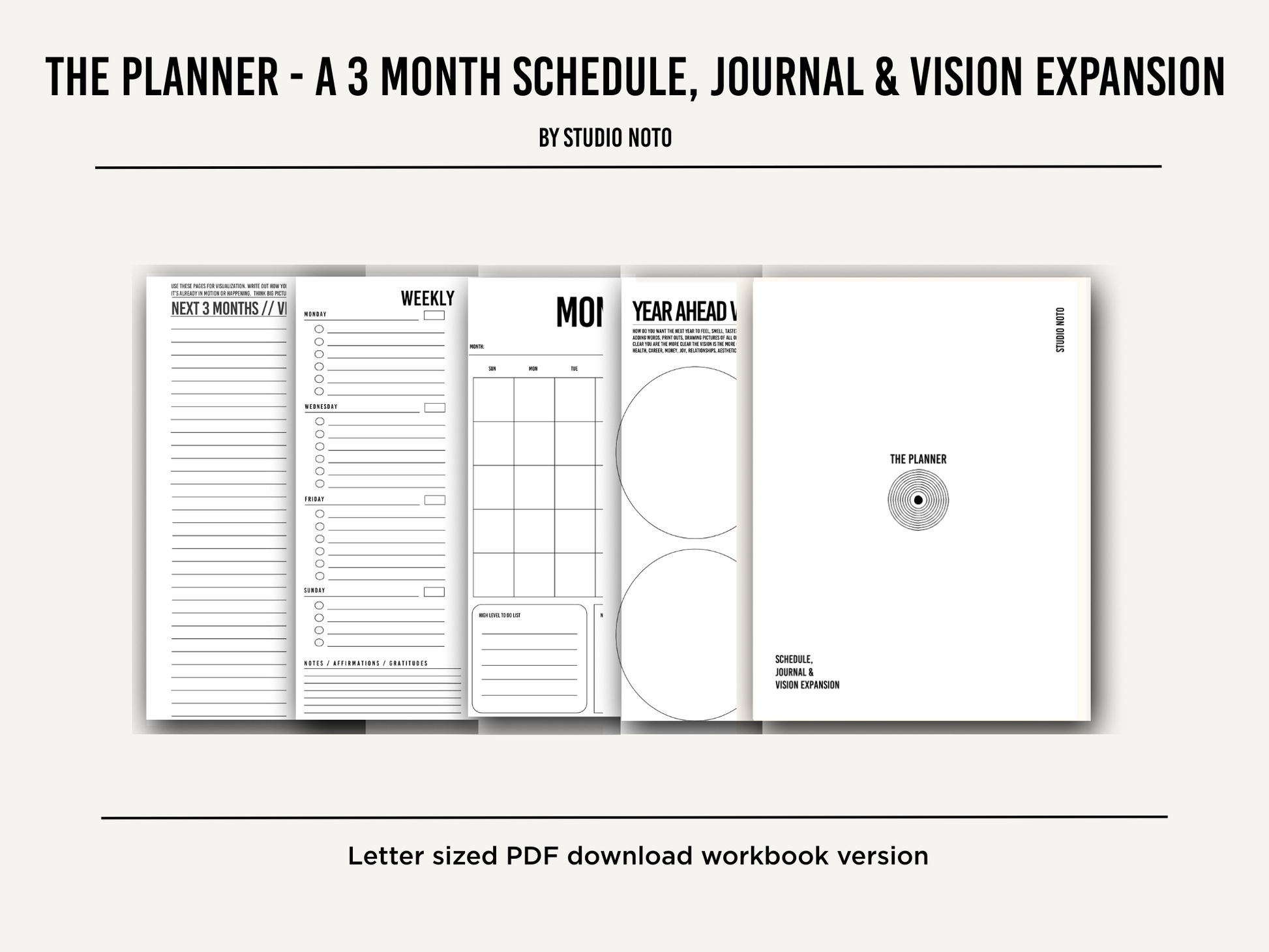 With a focus on three month intervals for effective progress, this planner mixes visualization and journaling to help you manifest your dreams. With extra note pages for expanded reflection, it encourages you to enjoy the process and connect meaningfully with your most valuable resource: your time. " - Gloria Noto